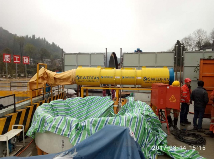 风机型号2xAVH-R63.11.2.8,直径600mm的风管4000米,本项目采用盾构顶管施工,直径3.17米,长度1400米,目前隧道风机安装调试成功,正式投入使用。SWEDFAN通风系统为隧道的顺利开挖,提供通风保障!