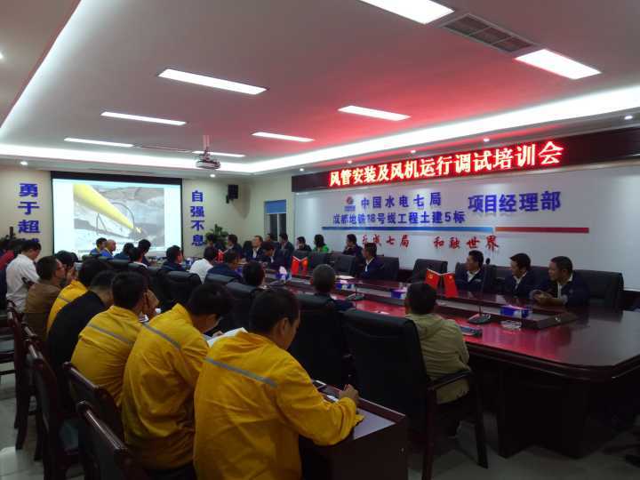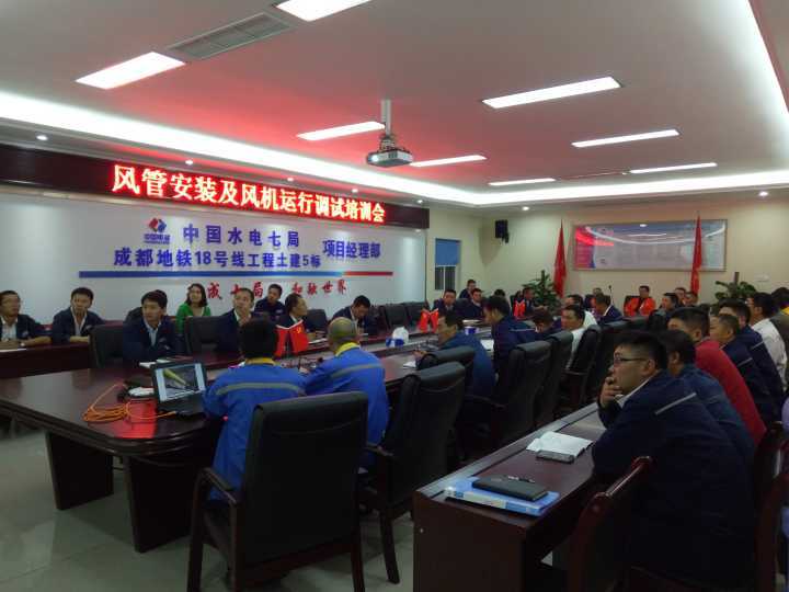 2016年10月9日,我公司售后服务人员在成都地铁施工现场组织了一场风管安装及风机运行管理培训会。
