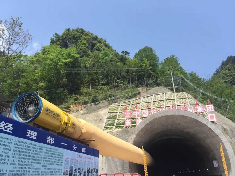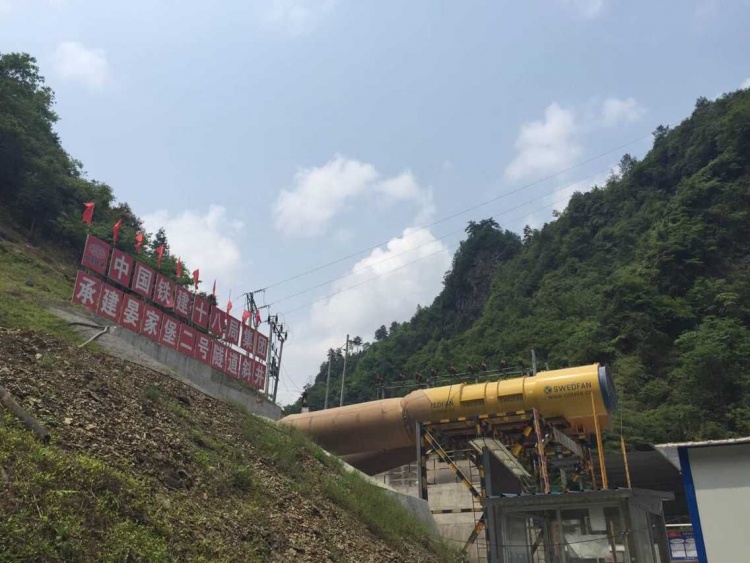 2015年9月6日斯威德(SWEDFAN)风机1xAVH140.132.4.8和2xAVH140.132.4.8各一台在黔张常铁路建设工地大坡隧道出口完成启动调试,投入运行。正洞风带直径2200mm,平导风带直径2000mm。大坡隧道全长6700m,采用正洞加平导钻爆施工法。承包商中铁十八局集团。