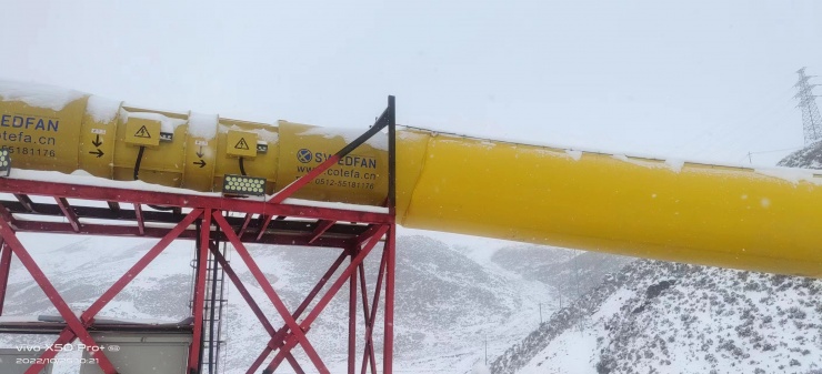 2022年10月26日SWEDFAN 2xAVH-R140.110.4.8风机。在海拔4700米的拉萨市墨竹工卡县巨龙铜矿洞口安装调试成功,投入运行。配套风带直径1.8米隧道断面32.5m²隧道长度16000m施工方式 TBM