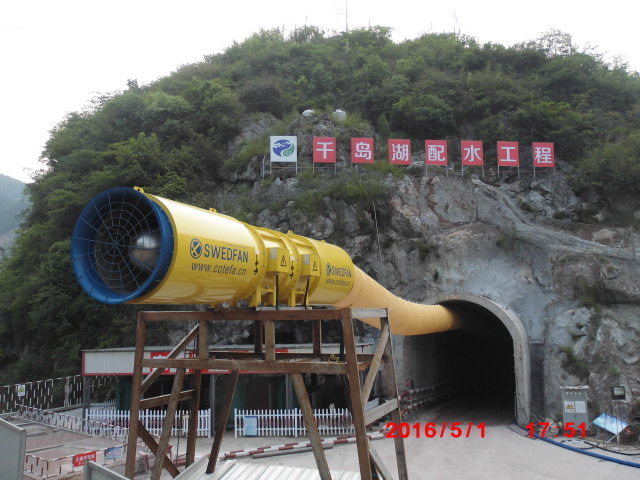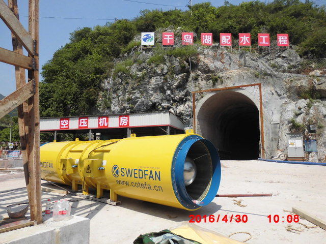 热烈祝贺:昆山柯迪发通风设备有限公司2016年5月2日,杭州第二水源千岛湖引水项目2标洪秋塘支洞,在我公司售后服务人员的指导下完成调试,SWEDFAN风机AVH125.90.4.8二台,主洞3000米,供货长度1000米。