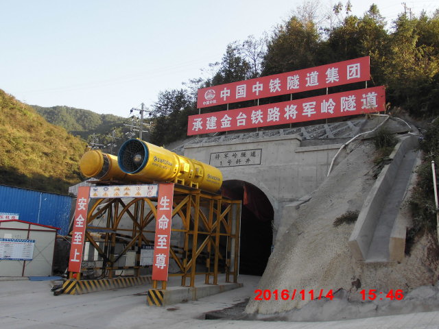 金台铁路将军令隧道1#斜井,位于磐安县仁川镇,斜井长度601米 主洞上游长度2800米,使用SWEDFAN 2xAVH-R140 110 4 8风机,保障施工期间的供风,风机于11月5号安装调试交付使用。