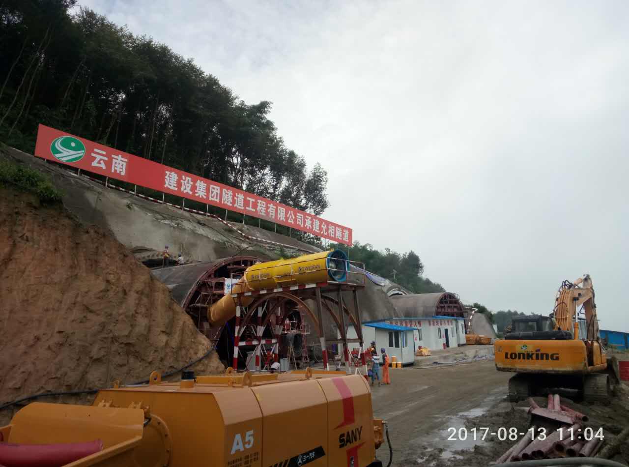 [云南.盈江] 2017年8月13日云南公投建设集团隧道工程有限公司。承建的腾陇高速一合同五工区允相隧道。隧道:断面52m²,长1500m,最大深埋352m.我司提供的SWEDFAN风机,型号:1xAVH-125.90.4.8 。风带直径1600mm。为隧道顺利开挖,提供通风保障。