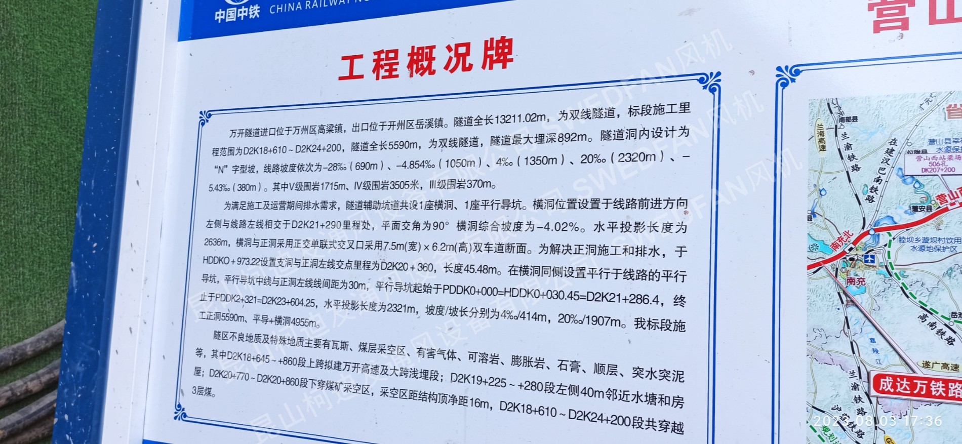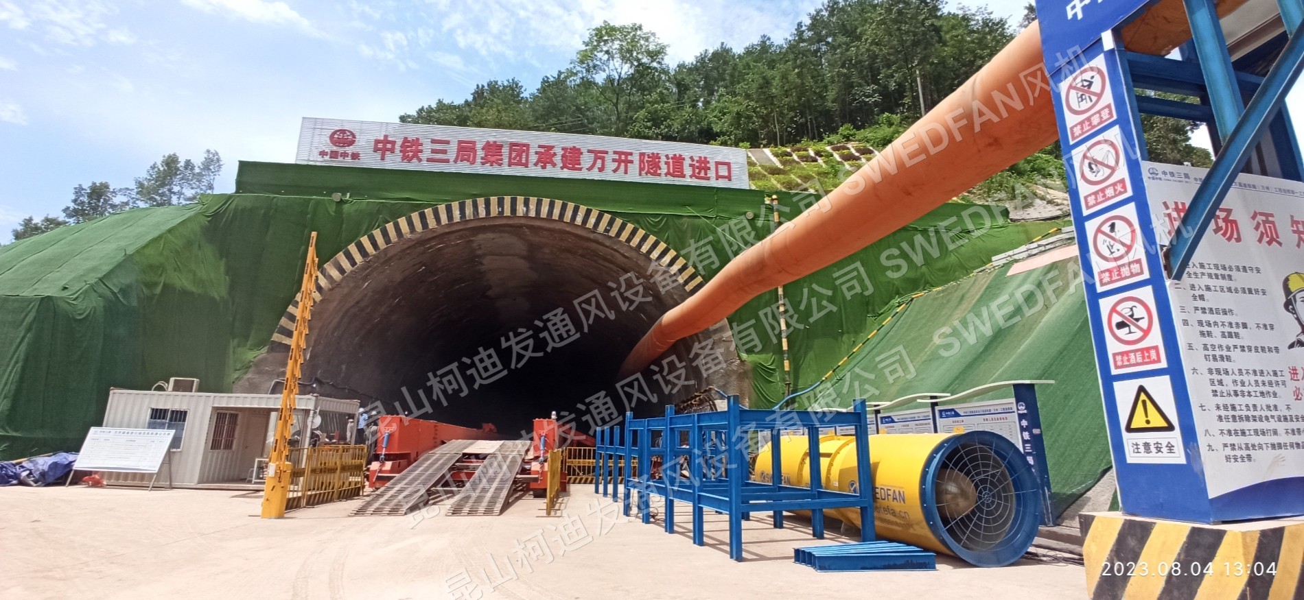 2023年8月4日SWEDFAN 1xAVH-R140.160.4.8二手风机。在中铁三局承建的成达万高铁,万开隧道进口洞口,完成安装调试,即将投入运行。为1321米的隧洞施工,提供通风保障。